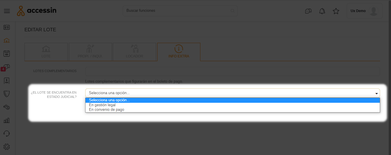 Seleccioná una de las opciones disponibles: En gestión legal o En convenio de pago